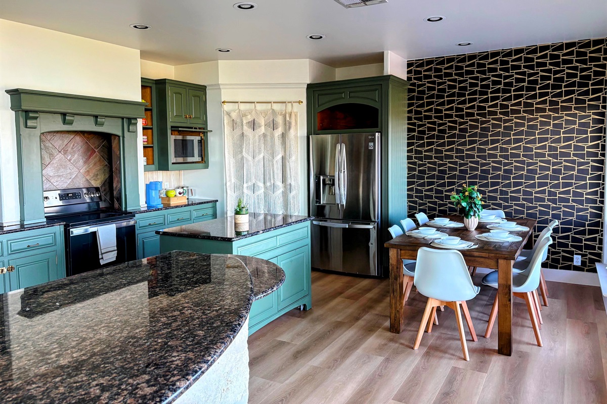 Chef’s Kitchen: Fully stocked with stainless steel appliances, granite countertops, and everything you need to cook a holiday feast.